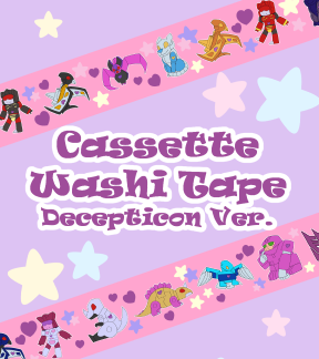 Two types of washi tape available, Autobot and Decepticon versions, featuring every cassette! 2cm width and 10m long
